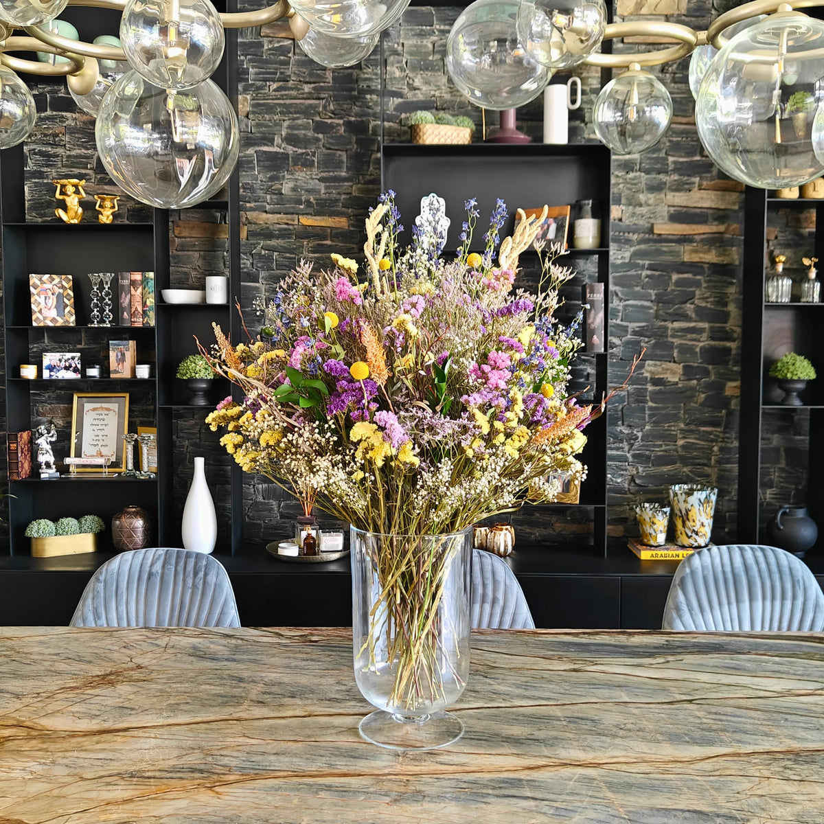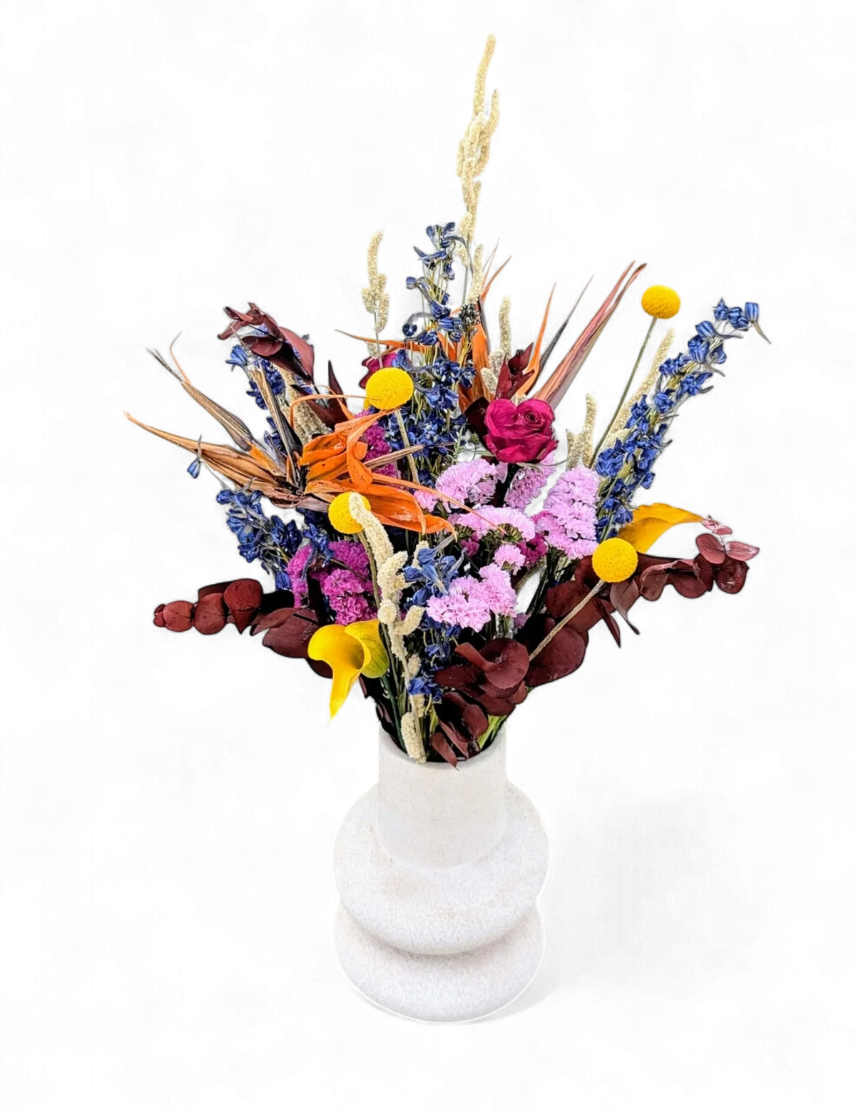 - כל גבעול מיובש באופן טבעי באוויר או נשמר באמצעות טכניקות בוטניות מתקדמות, נבחר בזכות יכולתו לשמור על צבעו, מרקמו ונוכחותו השקטה.